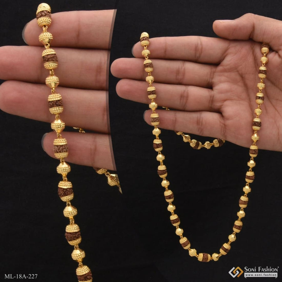 1 Gram Gold Plated Attention-Getting Design Rudraksha Mala for Men - Style A312