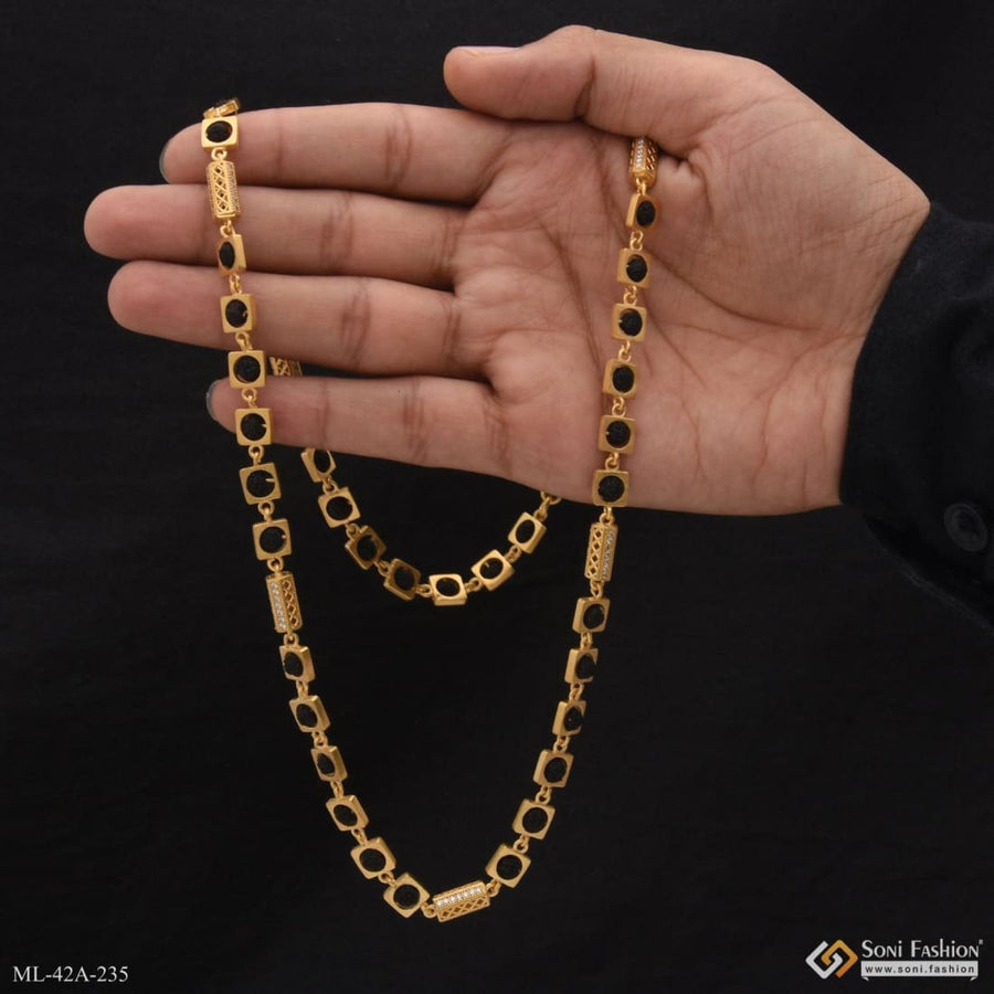 1 Gram Gold Plated Cool Design Superior Quality Rudraksha Mala For Men - Style A298