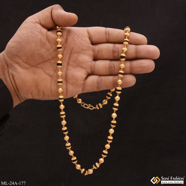 1 Gram Gold Forming Etched Design High-Quality Rudraksha Mala for Men - Style A256