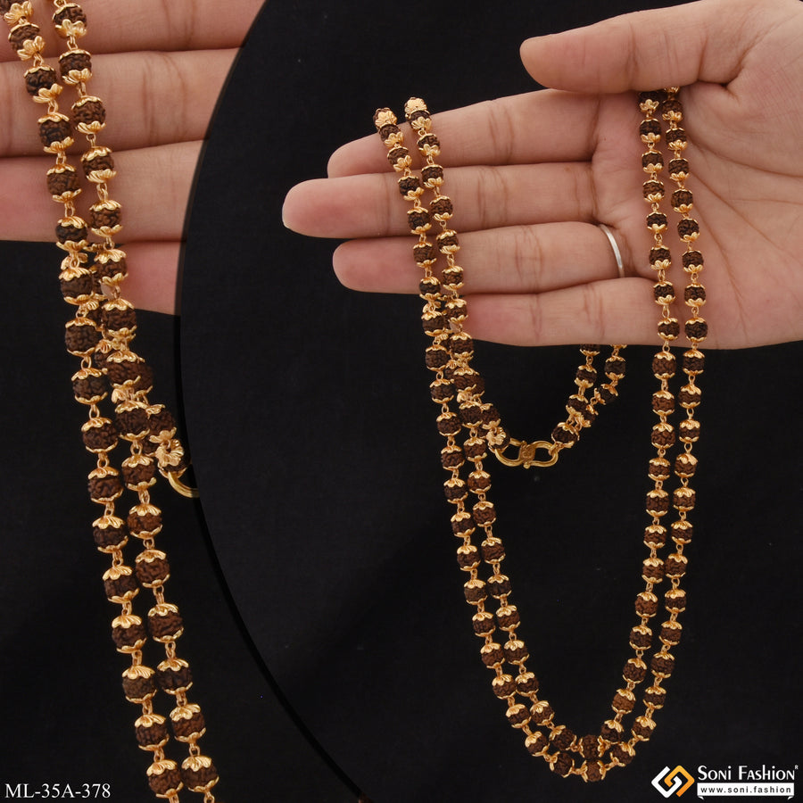 1 Gram Gold Plated 2 Line Popular Design Rudraksha Mala for Men - Style A378