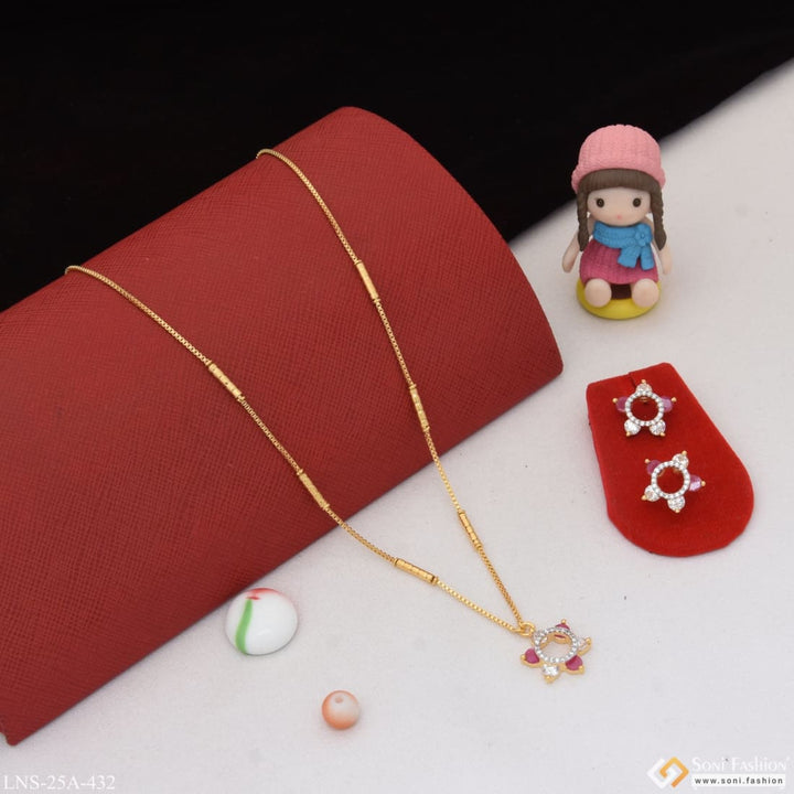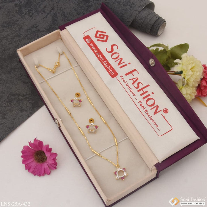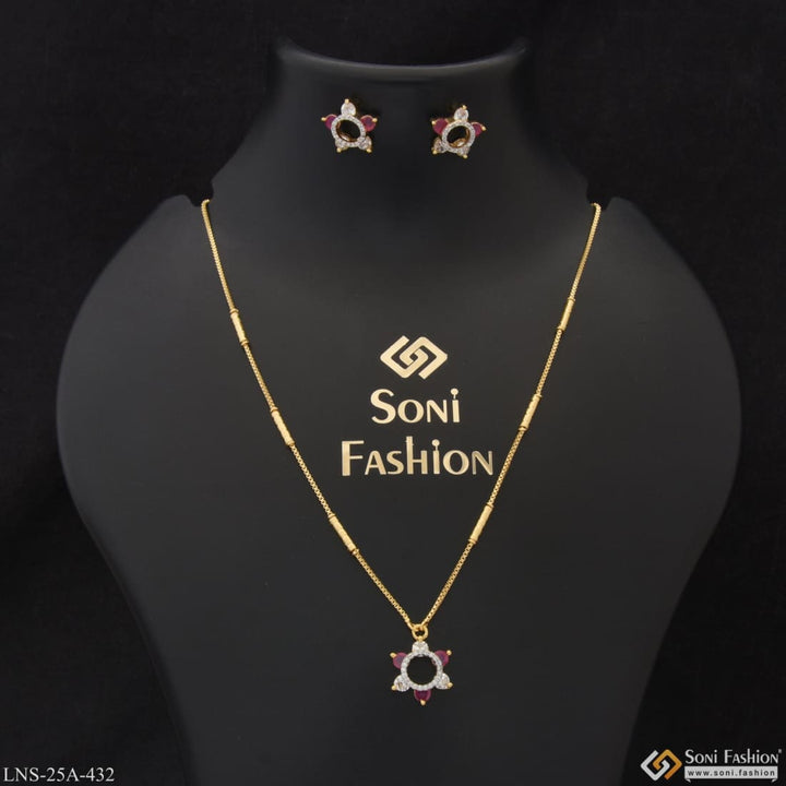 1 Gram Gold Plated with Diamond Cool Design Necklace Set for Ladies - Style A432