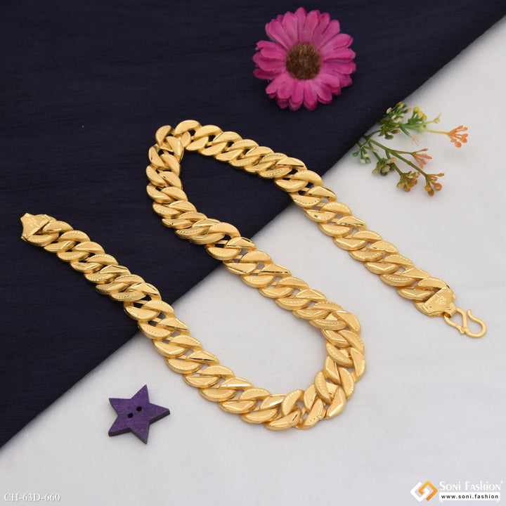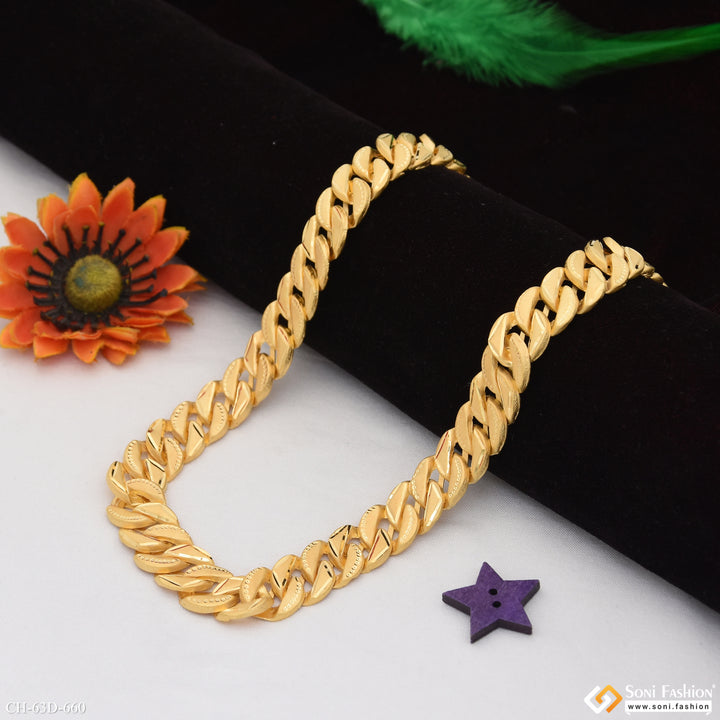 1 Gram Gold Plated Glittering Design Pokal Chain for Men - Style D660