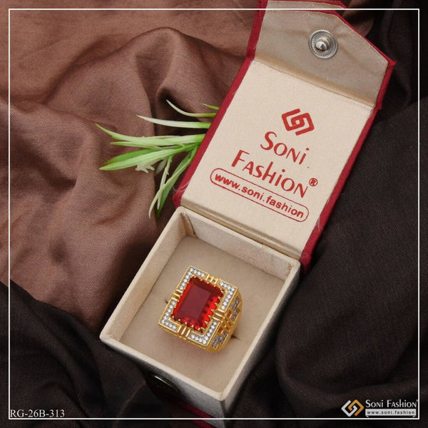 1 Gram Gold Plated Red Stone with Diamond Best Quality Ring for Men - Style B313