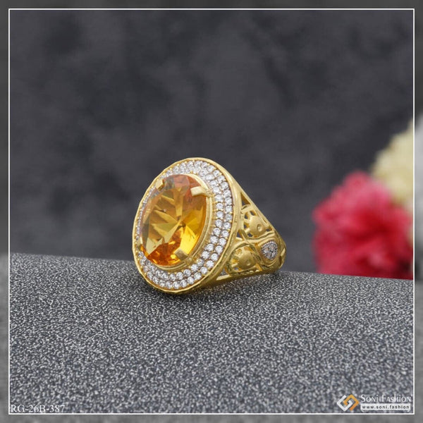 1 Gram Gold Plated Yellow Stone With Diamond Hand-crafted Ring For Men - Style B389