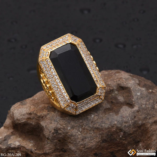 1 Gram Gold Plated Black Stone with Diamond Best Quality Ring for Men - Style A935