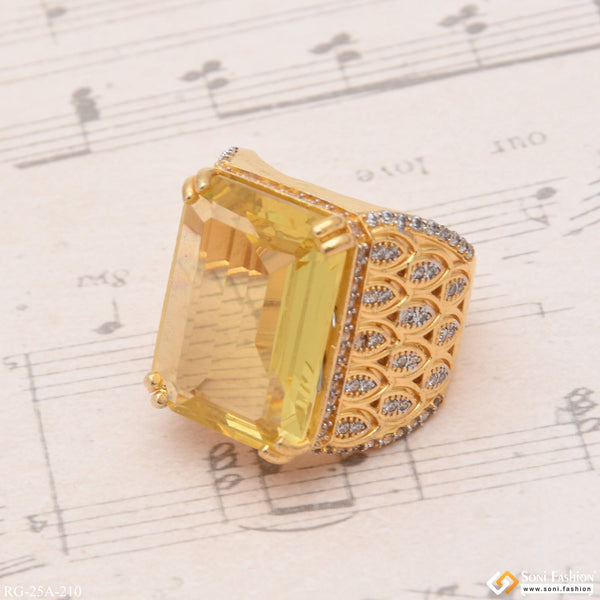 1 Gram Gold Plated Yellow Stone With Diamond Gold Plated Ring For Men - Style A210