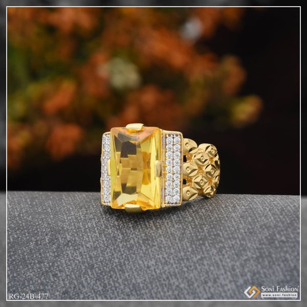 1 Gram Gold Plated Yellow Stone with Diamond Best Quality Ring for Men - Style B350