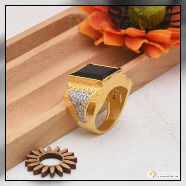 1 Gram Gold Plated Black Stone with Diamond Best Quality Ring for Men - Style B198
