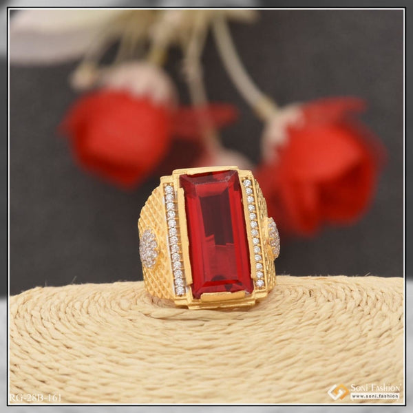 1 Gram Gold Plated Red Stone Latest Design High-quality Ring For Men - Style B161