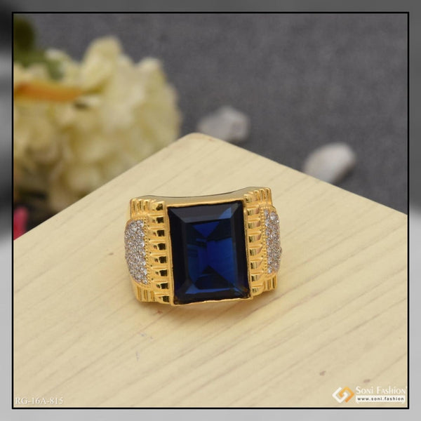 1 Gram Gold Plated Blue Stone with Diamond Best Quality Ring for Men - Style A815