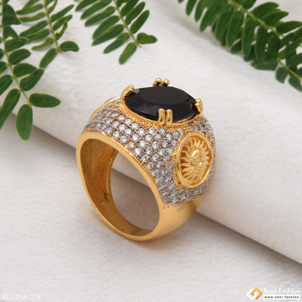 1 Gram Gold Plated Black Stone with Diamond Best Quality Ring for Men - Style A935