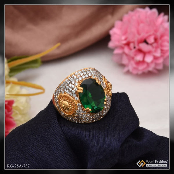 1 Gram Gold Plated Green Stone Attention-getting Design Ring For Men - Style B476