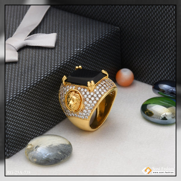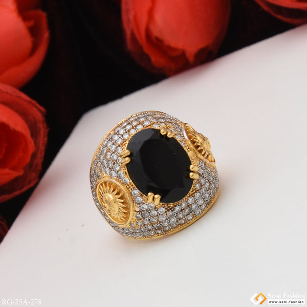 1 Gram Gold Plated Black Stone with Diamond Latest Design Ring for Men - Style B483
