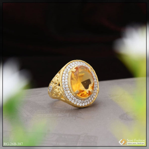 1 Gram Gold Plated Yellow Stone With Diamond Hand-crafted Ring For Men - Style B389