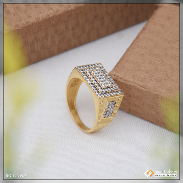 1 Gram Gold Plated Square with Diamond Artisanal Design Ring for Men - Style A942