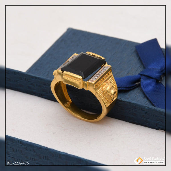 1 Gram Gold Plated Black Stone Etched Design High-quality Ring For Men - Style B163