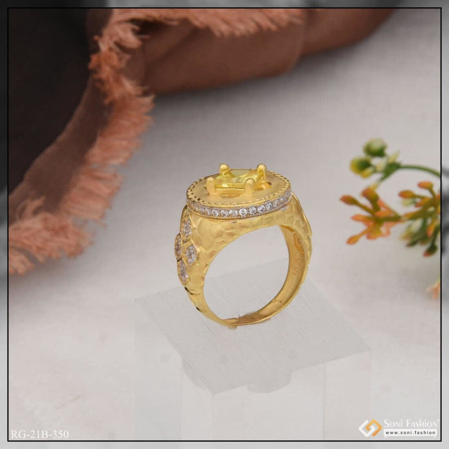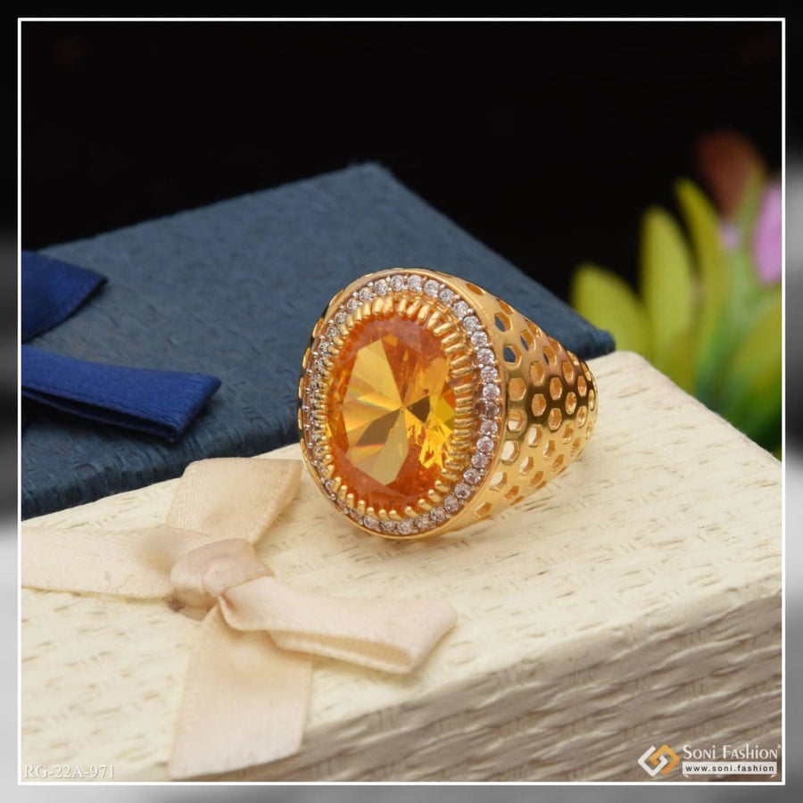 1 Gram Gold Plated Awesome Design Yellow Stone Ring for Men - Style B689