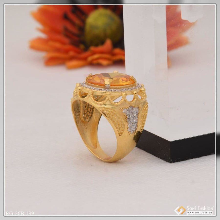 1 Gram Gold Plated Yellow Stone Ring for Men - Style B690