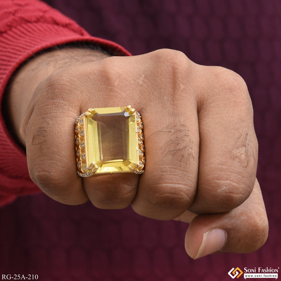 1 Gram Gold Plated Yellow Stone Attention-Getting Design Ring for Men - Style A614