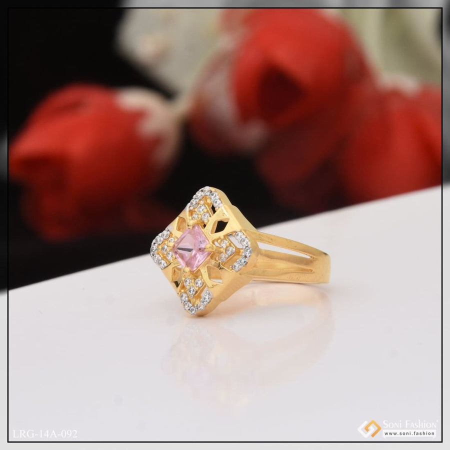 1 Gram Gold Plated Pink Stone with Diamond Funky Design Ring for Lady - Style LRG-057