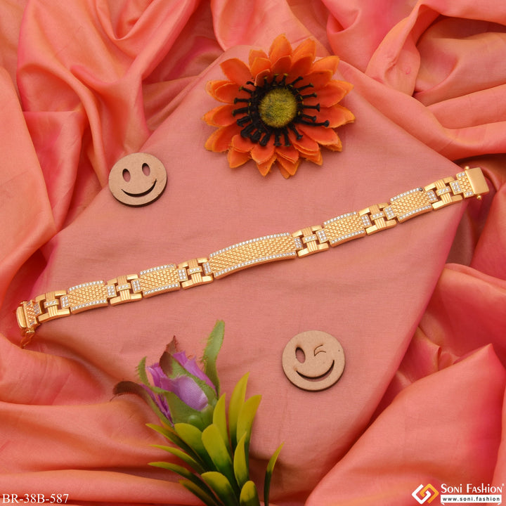 1 Gram Gold Best Quality Durable Design Gold Plated Bracelet for Men - Style B587
