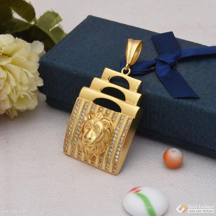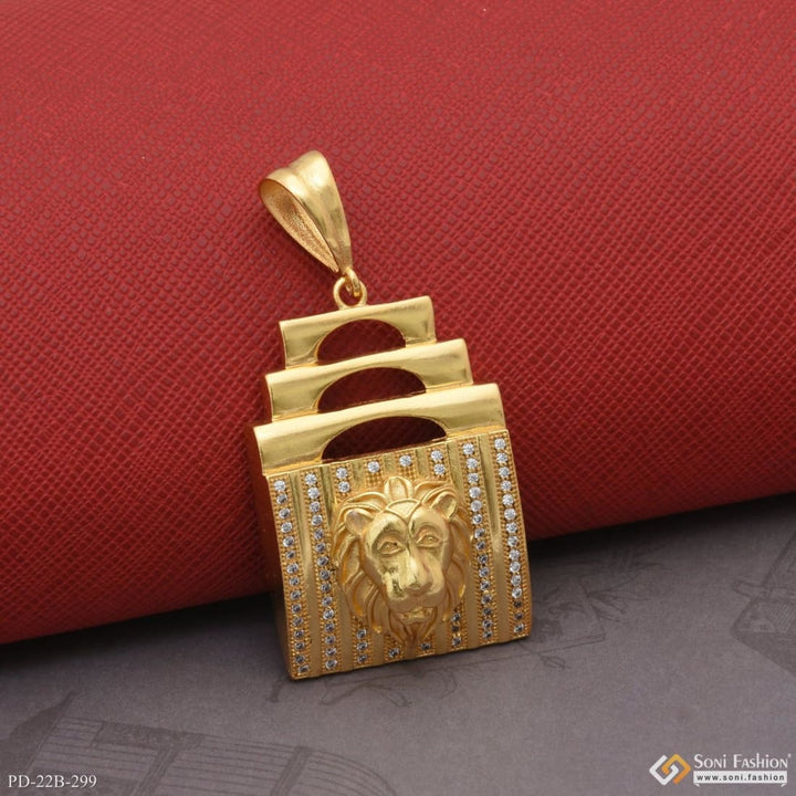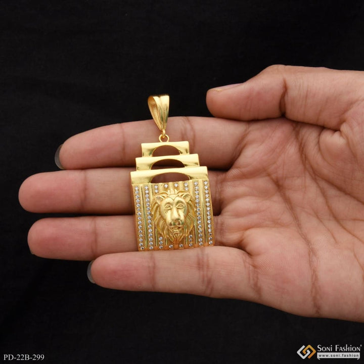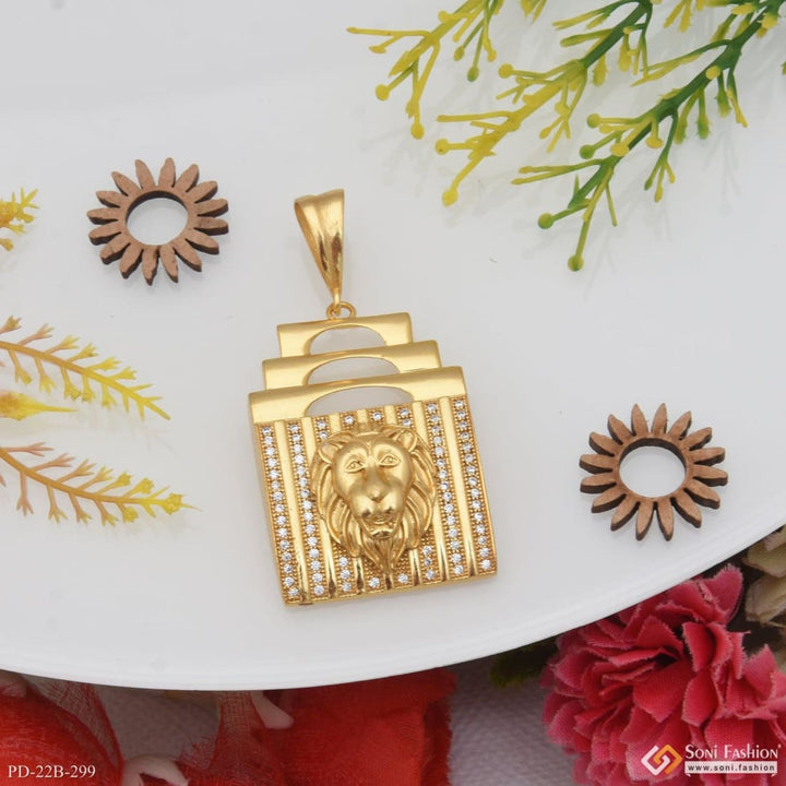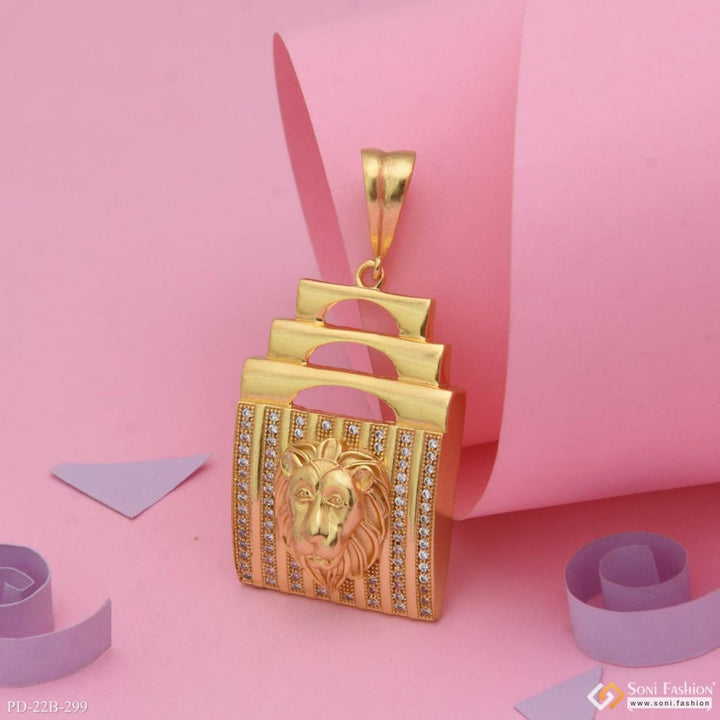 1 Gram Gold Forming Lion with Diamond Glamorous Design Pendant for Men - Style B299