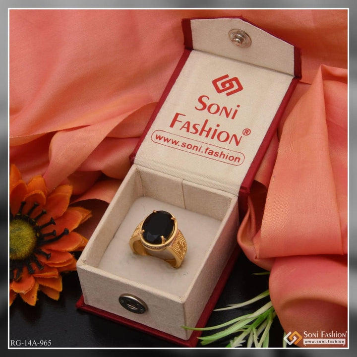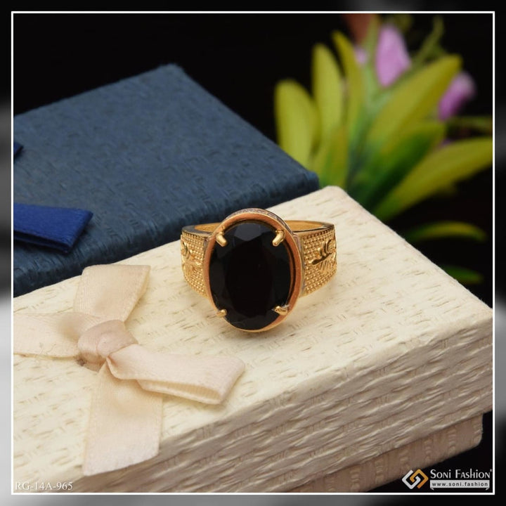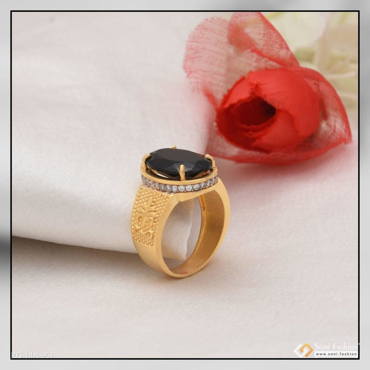 1 Gram Gold Forming Black Stone with Diamond Fashionable Design Ringq - Style A965