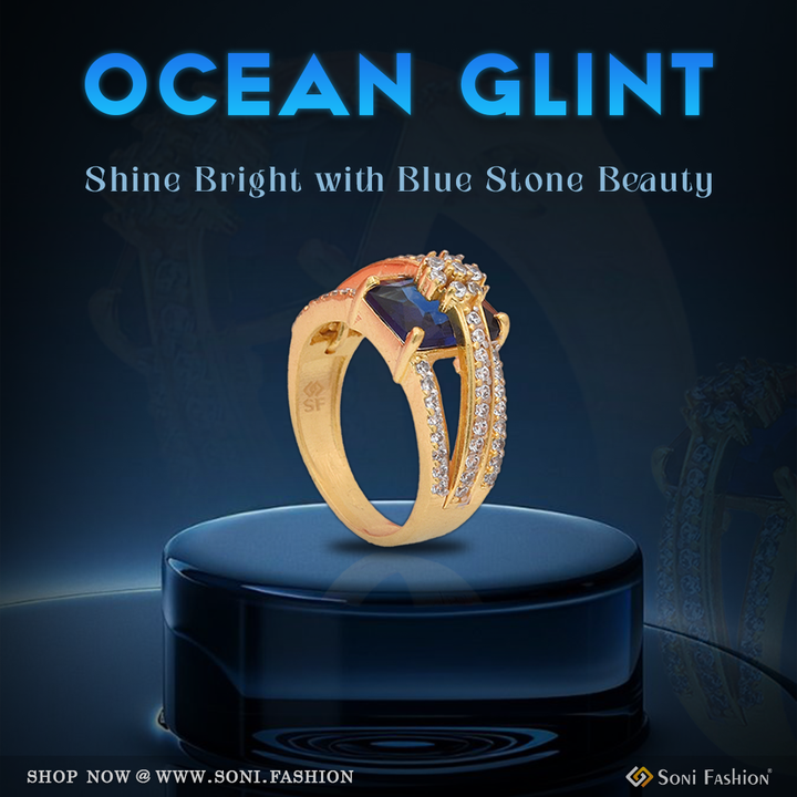 This 1 Gram Gold Plated Blue Stone with Diamond Fancy Design Ring is the perfect accessory for any woman looking to make a statement. It features a textured, blue stone with diamond accents, all set on a brass base and coated in miligram gold. Perfect for any occasion, this latest trend design also offers a personalized touch. Upgrade your look now with this beautiful, shining and pretty ring.