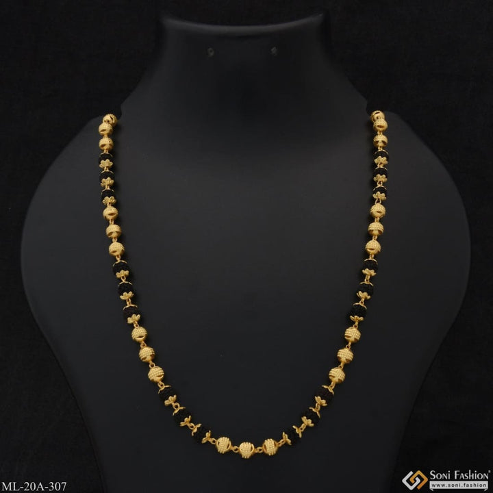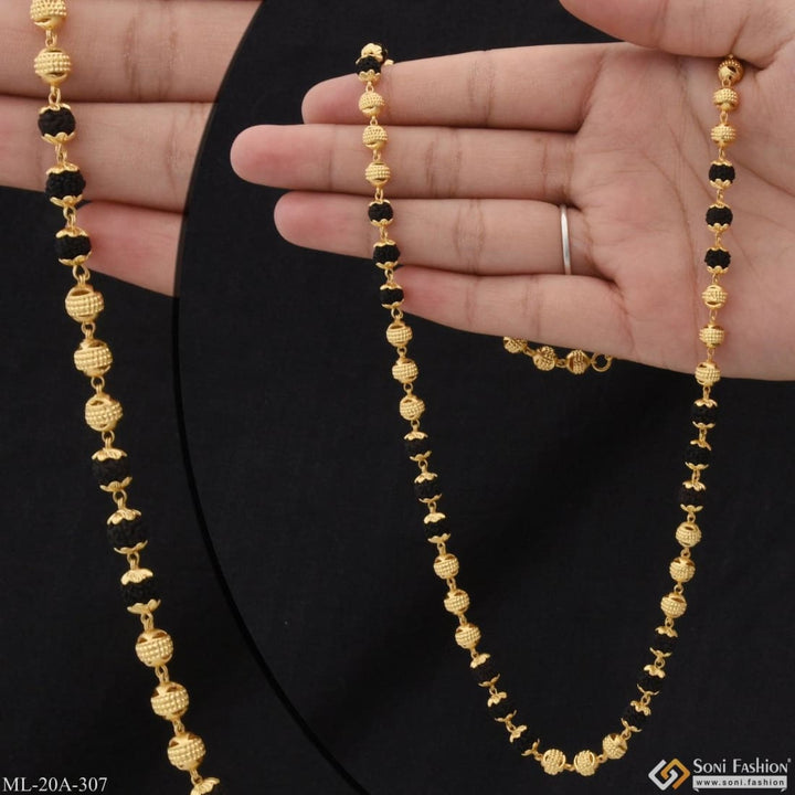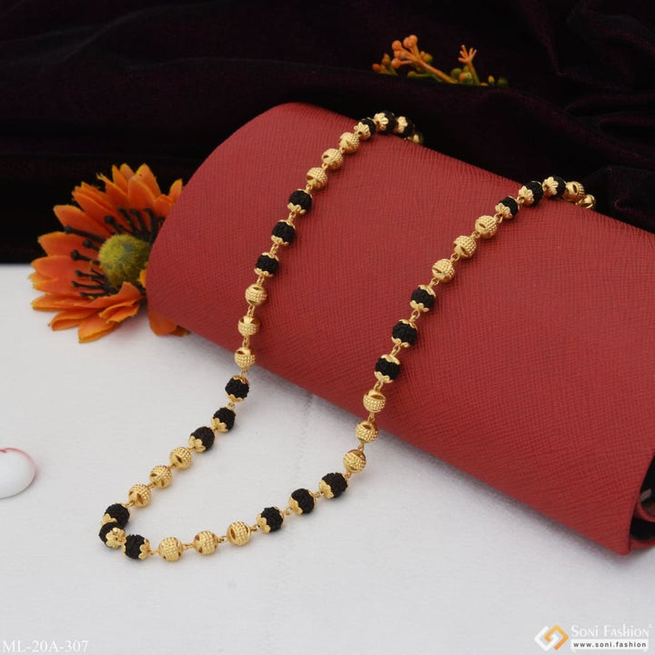 1 Gram Gold Plated Etched Design High-quality Rudraksha Mala For Men - Style A307