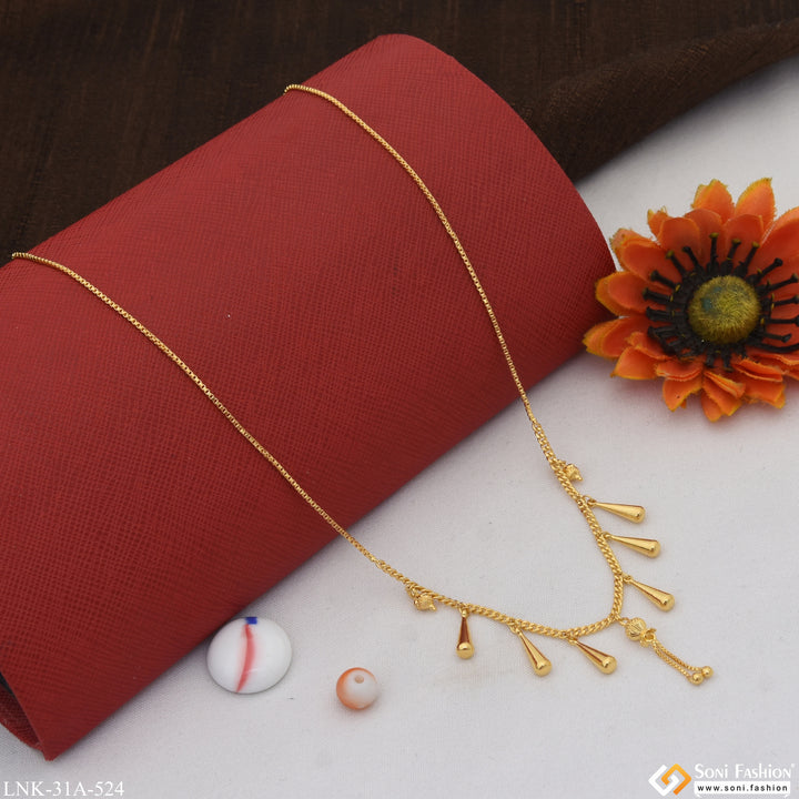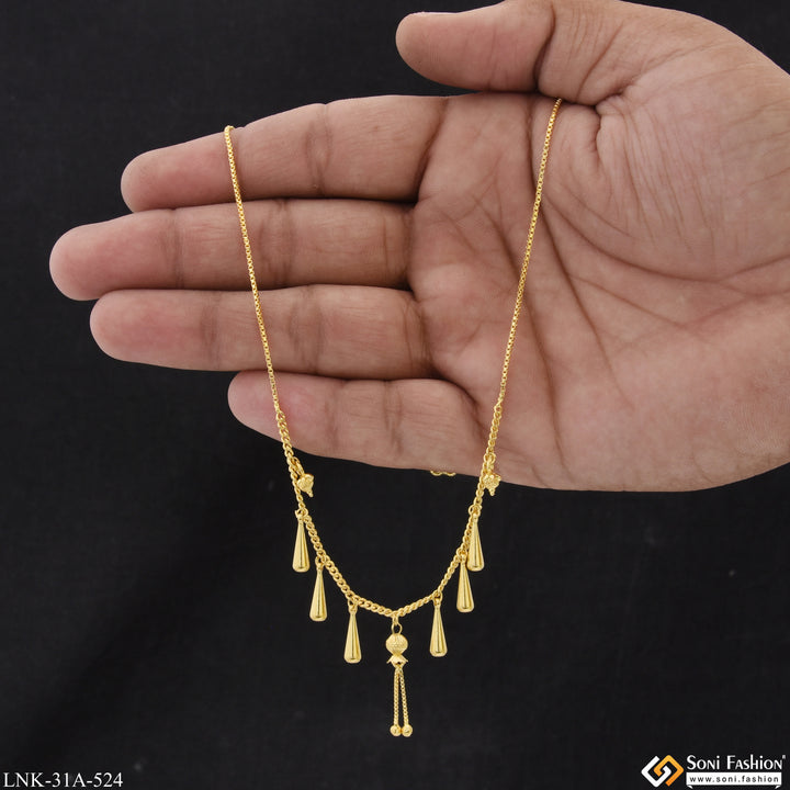 Enhance your style with our 1 Gram Gold Plated Fashionable Necklace for Ladies. Featuring a shining finish and crafted with miligram gold and brass, this necklace is the latest trend in fashion. Elevate any outfit with this stunning golden necklace.