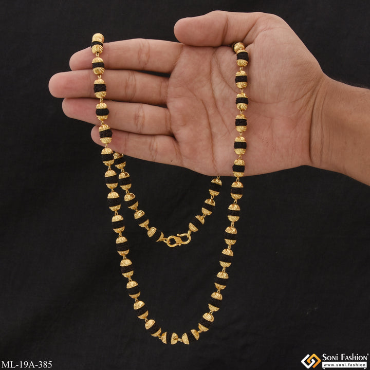 1 Gram Gold Plated Finely Detailed Design Rudraksha Mala for Men - Style A385