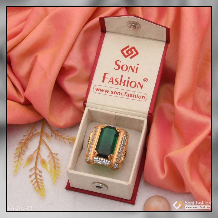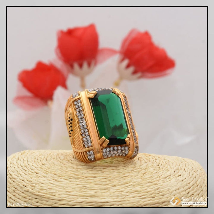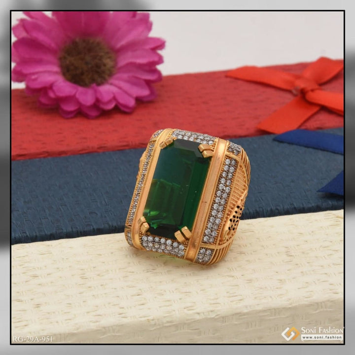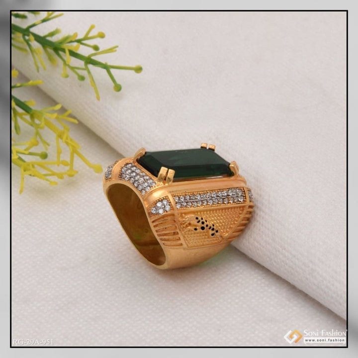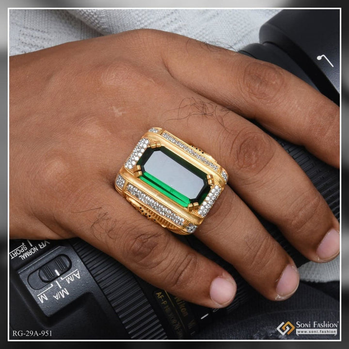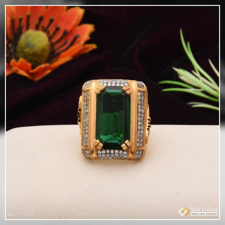 1 Gram Gold Forming Green Colour With Diamond Gold Plated Ring For Men - Style A951