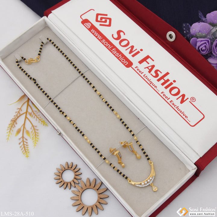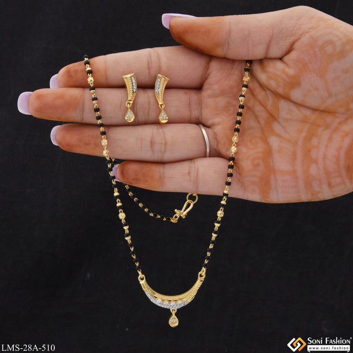 1 Gram Gold Plated Sparkling Design Mangalsutra Set for Women - Style A510