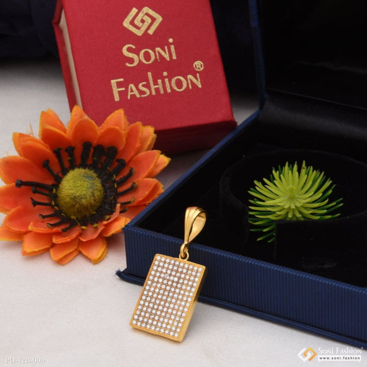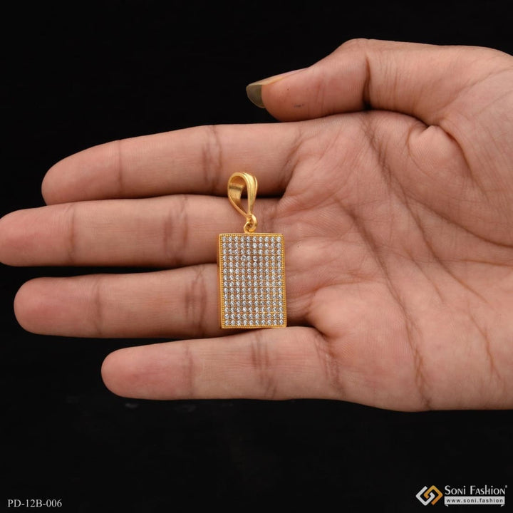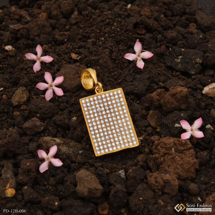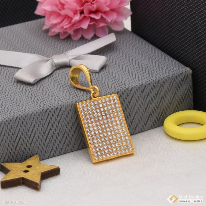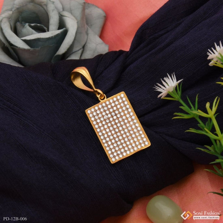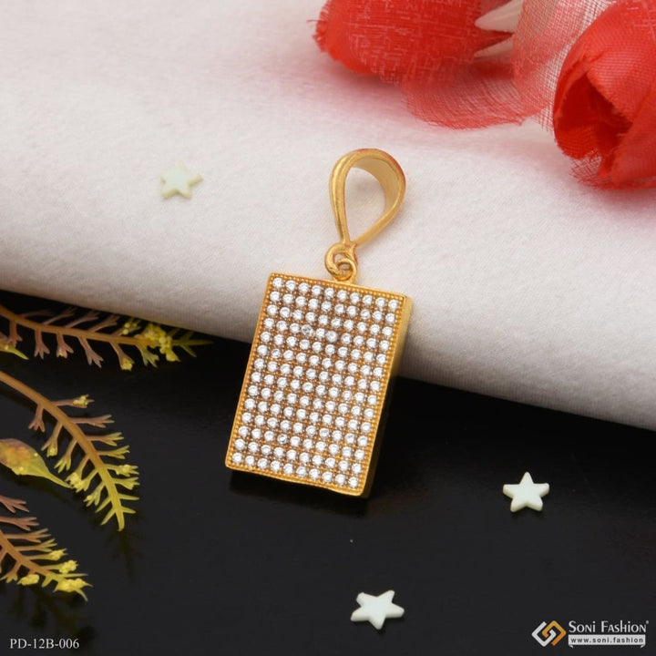 1 Gram Gold Plated Square with Diamond Finely Detailed Design Pendant - Style B006