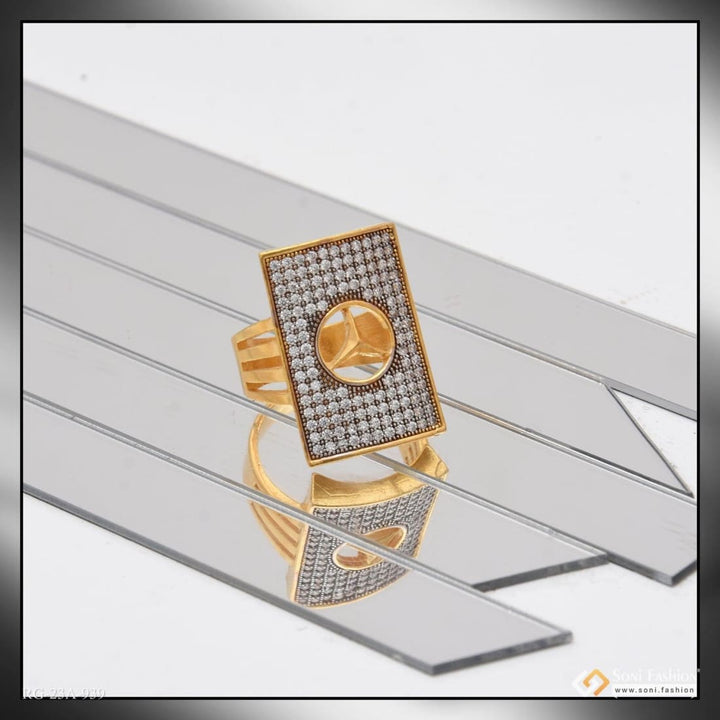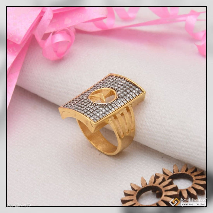 This 1 Gram Gold Plated Triangle With Diamond Glamorous Design Ring is fit for royalty. Made with a combination of rhodium and brass, it showcases a stunning diamond and a miligram...