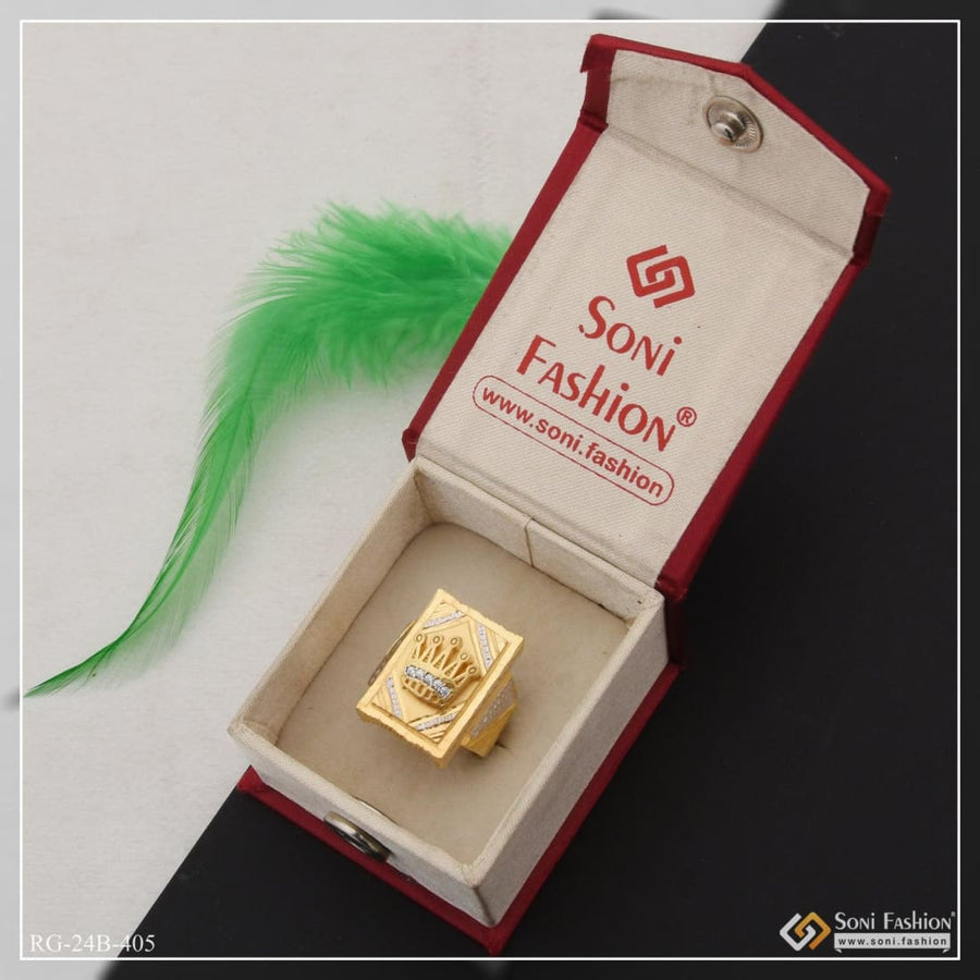 1 Gram Gold Plated Crown with Diamond Artisanal Design Ring for Men - Style B406