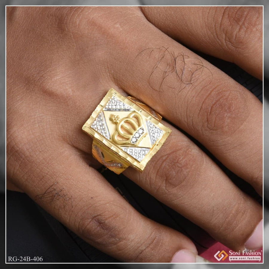 Introducing the 1 Gram Gold Plated Crown with Diamond Artisanal Design Ring for Men. Featuring a shining, royal rhodium rectangle design and 1 gram of miligram gold plating, this Matt...