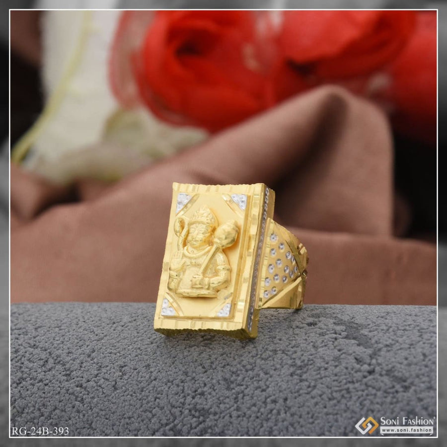 1 Gram Gold Plated Hanumanji Chic Design Superior Quality Ring for Men - Style B393