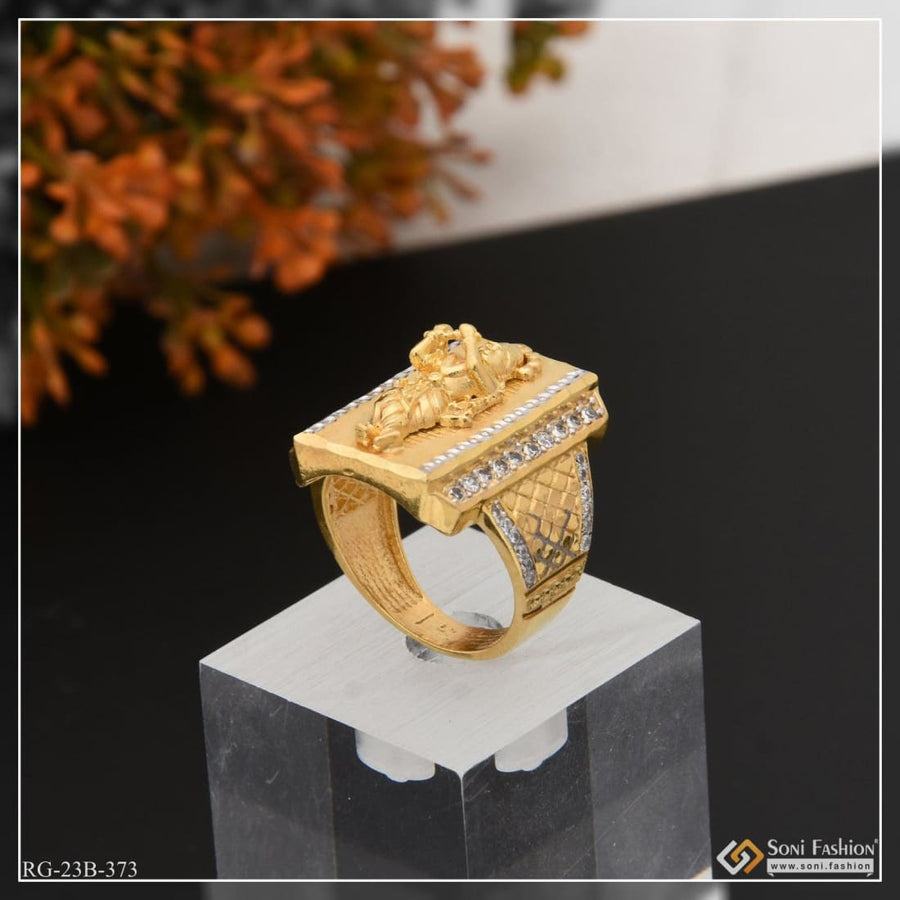 1 Gram Gold Plated Mahadev Best Quality Durable Design Ring for Men - Style B464