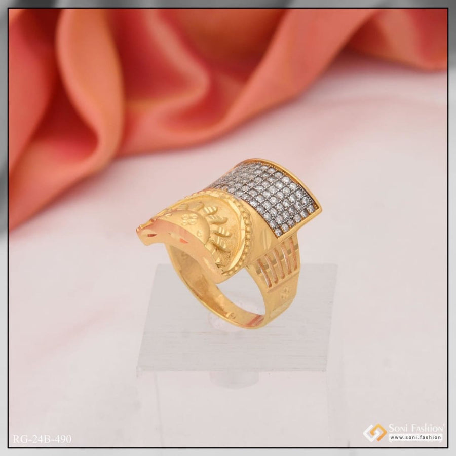 1 Gram Gold Plated Sun With Diamond Excellent Design Ring For Men - Style B490