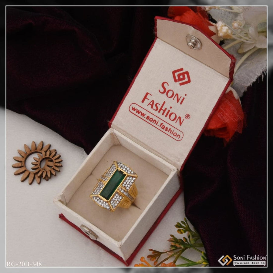 1 Gram Gold Plated Green Stone With Diamond Funky Design Ring For Men - Style B348