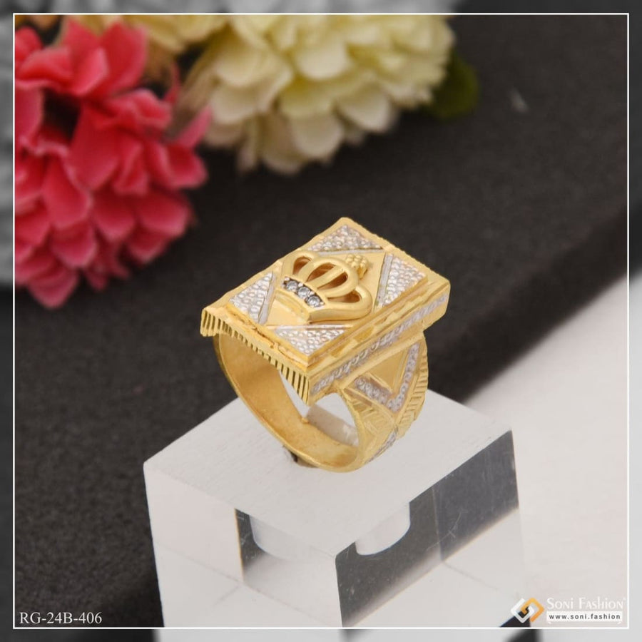 1 Gram Gold Plated Crown with Diamond Artisanal Design Ring for Men - Style B406