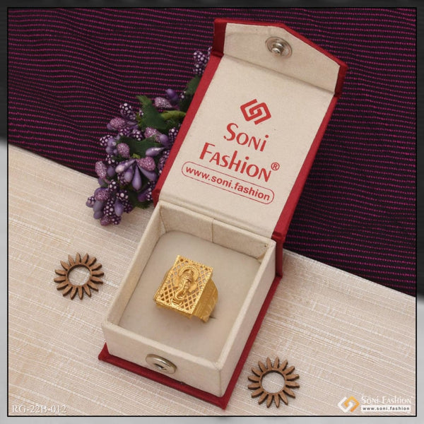 1 Gram Gold Forming Ganpati Dainty Design Best Quality Ring for Men - Style B012