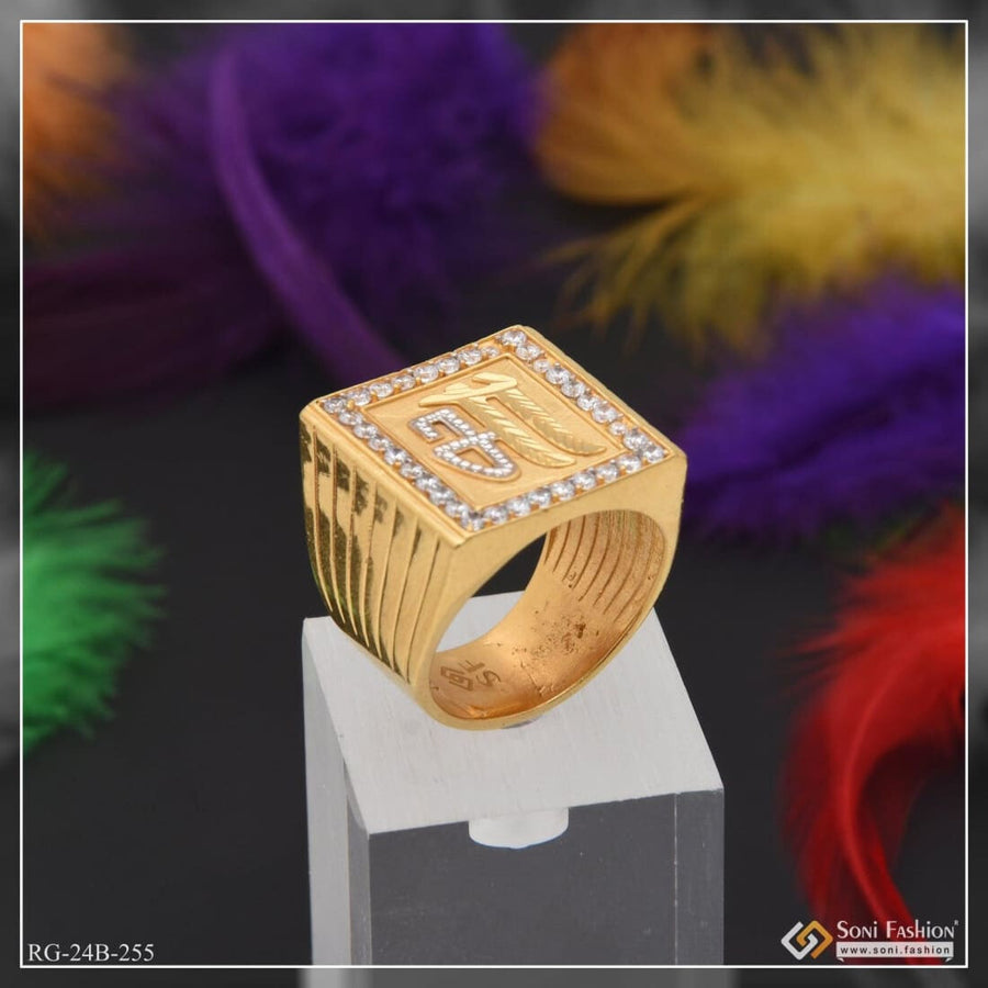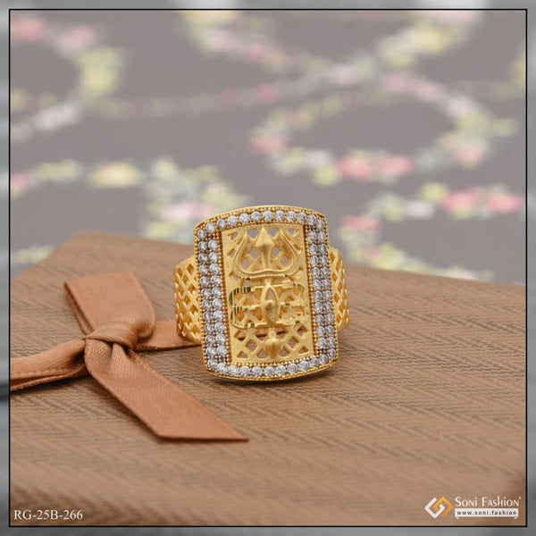 1 Gram Gold Plated Om With Diamond Finely Detailed Design Ring For Men - Style B318