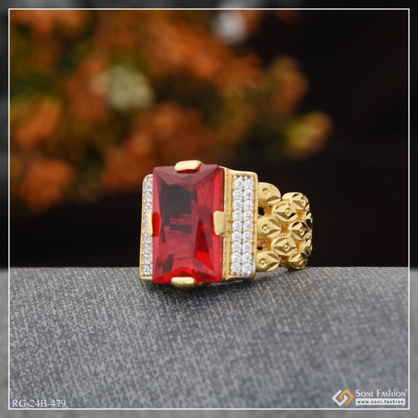 1 Gram Gold Plated Red Stone with Diamond Best Quality Ring for Men - Style A773