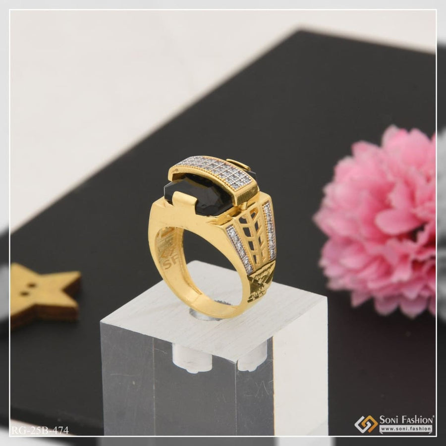 1 Gram Gold Forming Black Stone Lovely Design High-Quality Ring for Men - Style A869