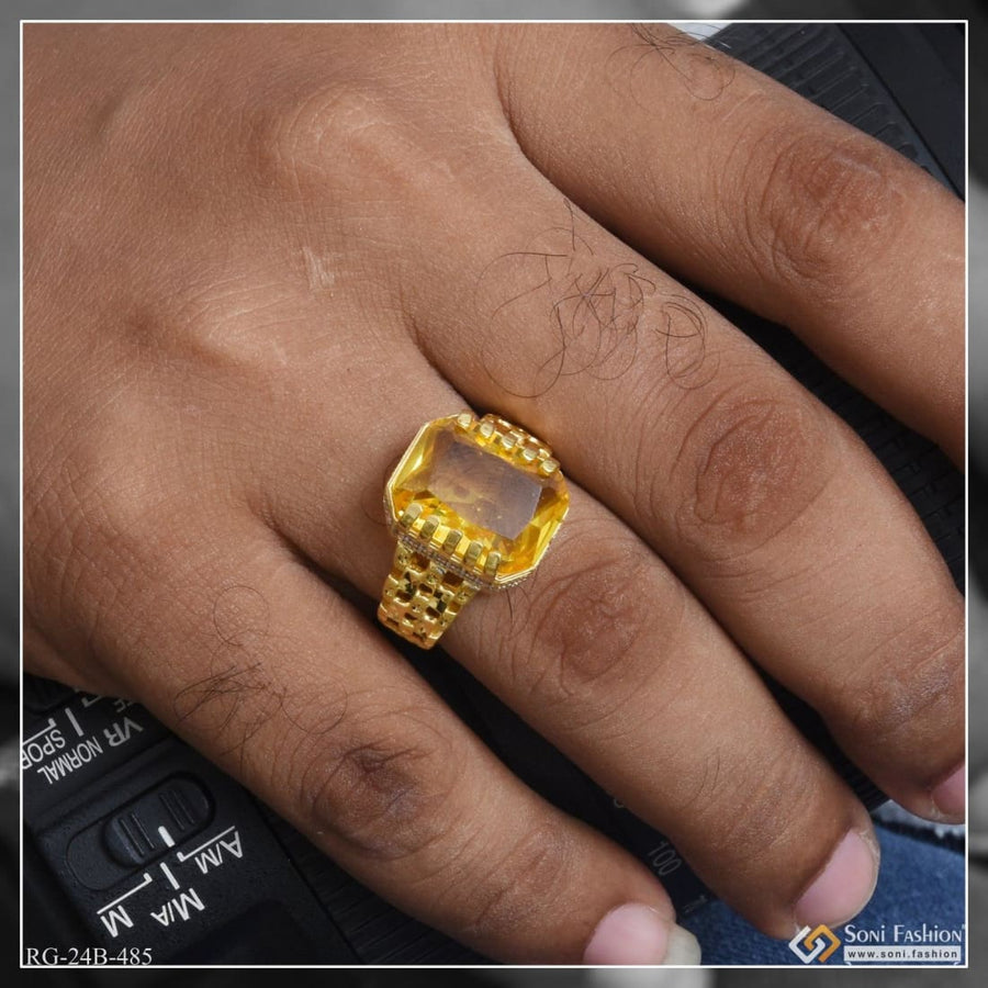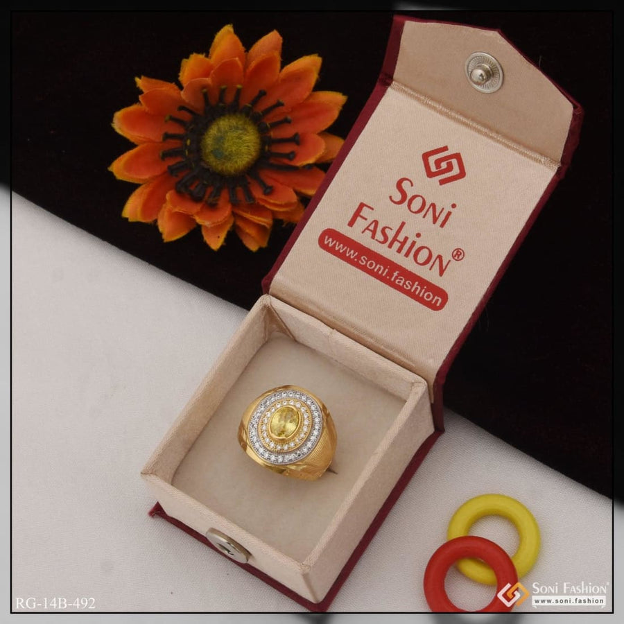 1 Gram Gold Forming Yellow Stone With Diamond Gorgeous Design Ring For Men - Style A775