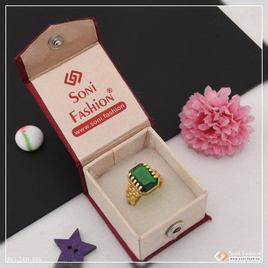 1 Gram Gold Forming Green Colour With Diamond Gold Plated Ring For Men - Style A951