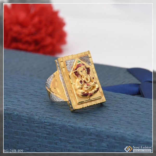 The 1 Gram Gold Forming Ganpati Stylish Design Best Quality Ring for Men is a luxurious and religious accessory that features a textured, shining and royal design. Crafted from miligram...
