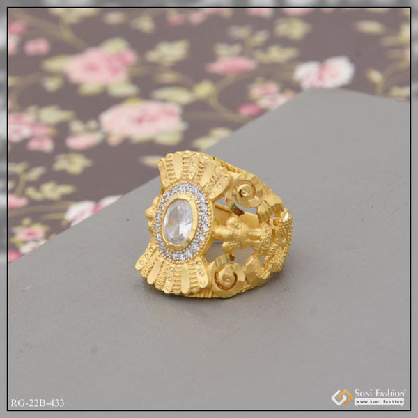 1 Gram Gold Forming Goga with Diamond Fashionable Design Gold Plated Ring - Style A010
